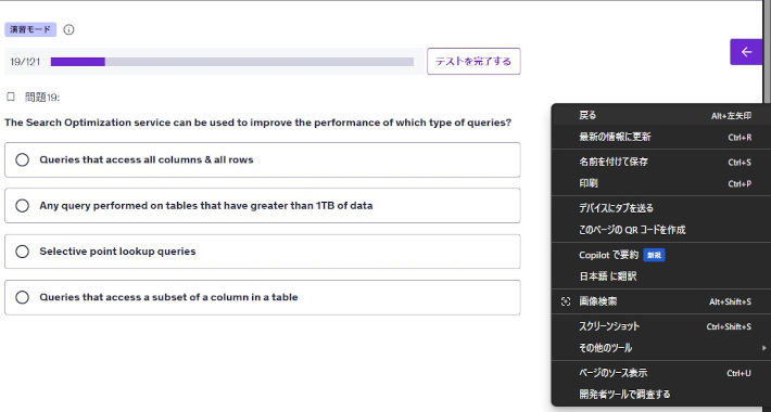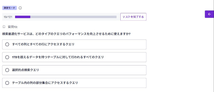 | 演習テスト4:リビジョン練習セット – [COF-C02] アーキテクチャ&データ保護・共有 | 69% | 91% |